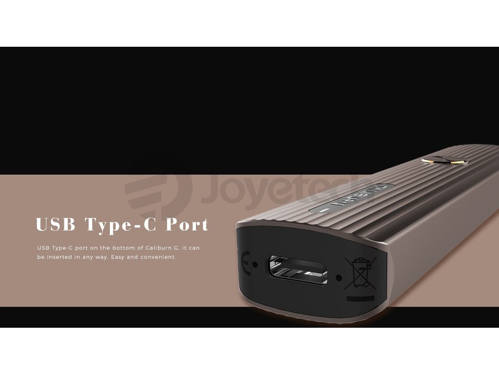 Moderní USB-C nabíjení V praktickém a designově povedeném hliníkovém těle se ukrývá silnější baterie o celkové kapacitě 690mAh, kterou lze ještě snadněji nabíjet rychlým USB-C konektorem, kde už také nemusíme řešit, kterým směrem konektor zapojit. Konektor USB-C se nachází na spodní straně cigarety.