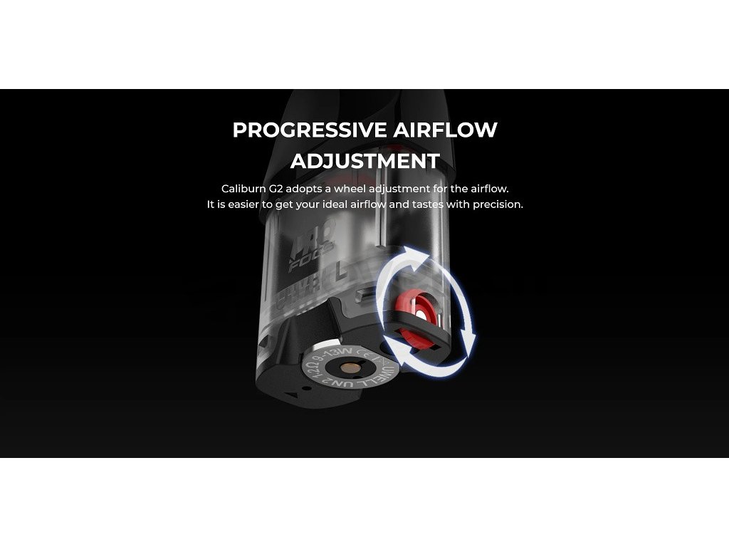 Velmi populární Pod elektronická cigareta Uwell Caliburn G se dočkala dalšího upgrade a přichází tak ve své druhé verzi, se kterou představuje nejen upravený design, ale také vylepšené parametry. V těle z hliníkové slitiny na Vás čeká integrovaná baterie s kapacitou 750mAh, která je vybavena barevnou LED pro přehlednou indikaci zbývající kapacity baterie. Pro rychlé nabíjení je na spodní straně e-cigarety připraven praktický USB-C port. Uwell Caliburn G2 nabízí jak automatický, tak i manuální systém žhavení. Vapování si tak užijete už po pouhém potahu z náustku, případně můžete i podržet tlačítko, se kterým přesně ovlivníte délku žhavení. Velkou změnou oproti předchozímu modelu je možnost nastavit si přívod vzduchu podle svých chutí a potřeb. Už není potřeba otáčet celou Pod Cartridge, samotný pod má nyní integrované kolečko, pomocí kterého nastavíte přesně takovou volnost potahu, jakou máte rádi. Rozměry 110,5mm x 22,5mm x 13mm, objem Pod Cartridge 2ml, konstanstní výkon 18W, materiál hliníková slitina, PA. Barevné provedení Pyrrole Scarlet.