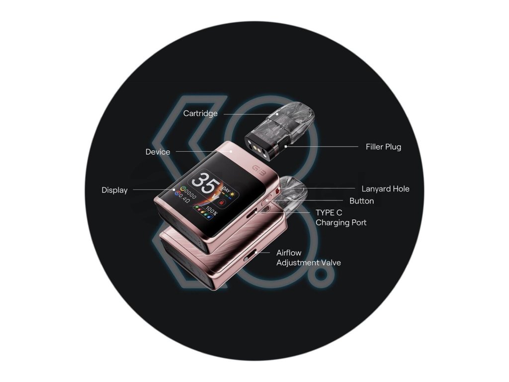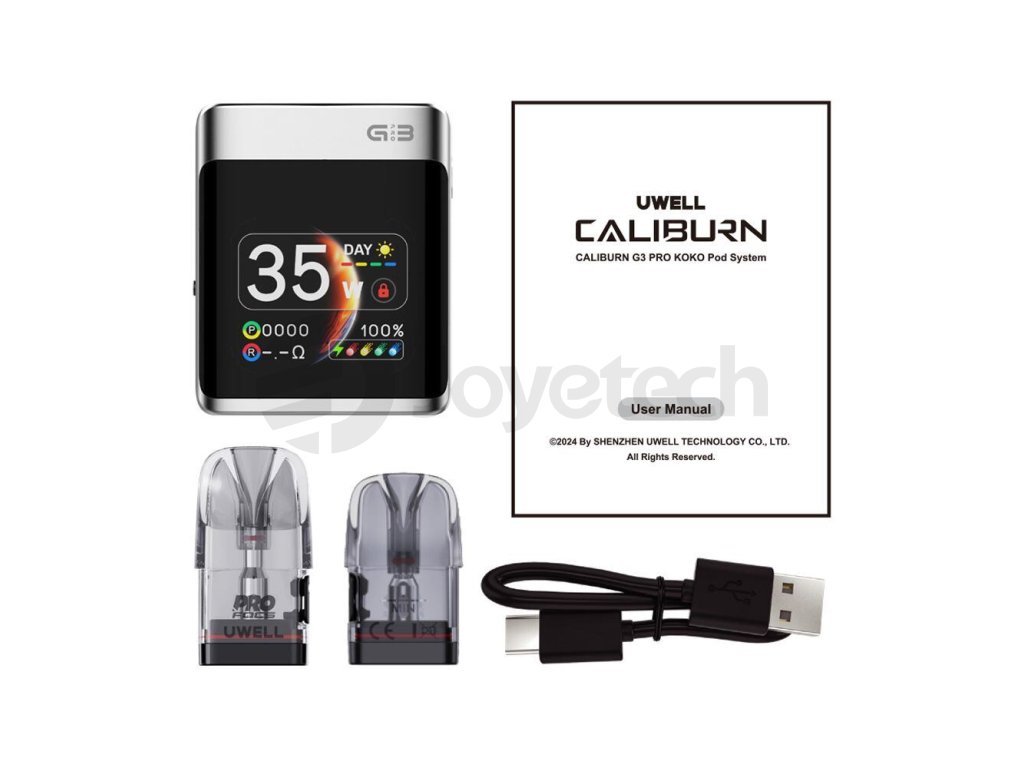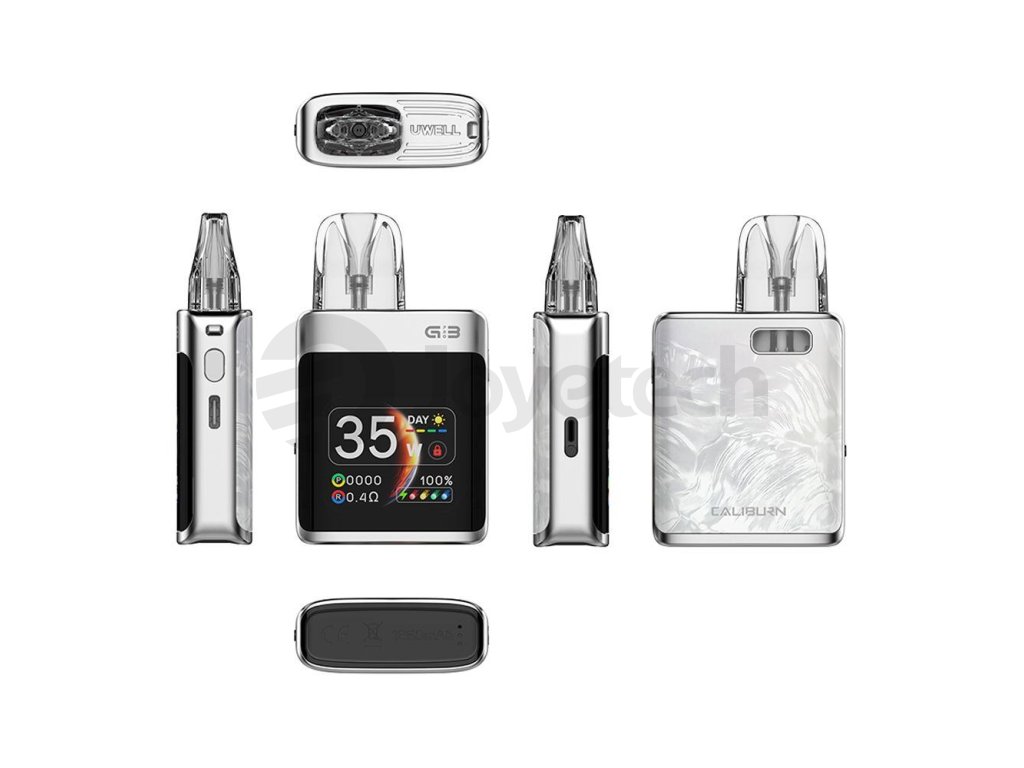 Po představení luxusního podu Caliburn G3 Pro s full-screen barevným displejem uvádí na trh výrobce Uwell také populární variantu KOKO. Tento kapesní pod systém kombinuje výhody dynamického rozhraní, obrovského displeje, odladěného systému airflow regulace a nastavitelného výkonu pro ten nejultimátnější požitek z vapování. Navržen pro uspokojení potřeb i těch nejnáročnějších vaperů, Caliburn G3 Pro Koko se pyšní ohromujícím barevným TFT displejem, obrovskou kapacitou integrované baterie 1250mAh a strhujícím výstupním výkonem až 35W. Díky podpoře cartridgí Caliburn G3 s technologií Pro-FOCS nabídne využití pro milovníky všech stylů vapování s maximálním důrazem na výraznou a bohatou chuť a dlouhou životnost. A s kvalitně zpracovanou kovovou konstrukcí a širokým výběrem barevných variant se stane ukázkou vašeho osobitého vkusu a stylu.