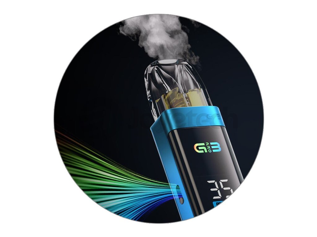 Uwell Caliburn G3 Pro Pod Kit představuje revoluci ve světě pod systémů díky masivnímu full-screen displeji v přední části, dynamickému uživatelskému rozhraní a sofistikovanému ovládání. Díky celobarevnému rozhraní na předním panelu budete mít všechny informace hezky jako na dlani. Ve spojení s novými cartridgemi Caliburn G3 s odporem 0,4 ohm navíc vykouzlíte více páry, než kdykoliv předtím. Vše potom umocní integrovaná baterie s kapacitou 1000mAh, podpora dvou metod spínání potahu a možnost regulace výstupního výkonu v ohromujícím rozsahu 5 - 35W. Vrhněte se do vapování s podporou cartridgí G3 a technologií Pro-FOCS pro co nejvýraznější chuť. Futuristický pod systém Caliburn G3 Pro naplno uspokojí každodenní potřeby všech vaperů.