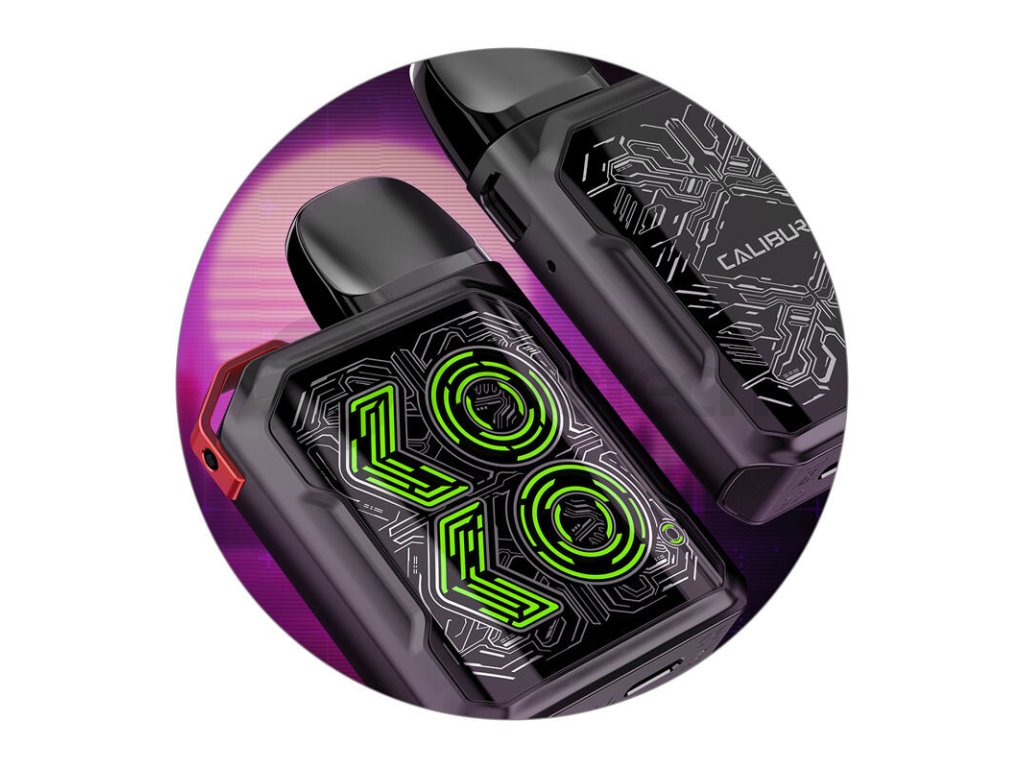 Uwell Caliburn GK2 Pod Kit je novým přírůstkem do rodiny populárních pod systémů Caliburn a zdařilým nástupcem oblíbeného kapesního modelu KOKO PRIME. Na první pohled láká na stylové dílenské zpracování, futuristický design s prvky cyberpunku a steampunku a na kompaktní rozměry. Tělo e-cigarety snadno schováte do kapsy a budete si ji moci vzít kamkoliv pohodlně s sebou. Disponuje rozměry těla 72,2 x 46,6 x 16,3 mm a jedinečnou nízkou hmotností, která se zastavila na krásných 45,2 g. Jedná se tak o ideálního společníka pro každodenní vaping. Uvnitř malého těla na vás čeká integrovaná baterie se solidní kapacitou 690 mAh pro dlouhé hodiny nerušeného potahování. V případě potřeby pak postačí kdykoliv připojit USB-C kabel k portu na těle a baterii budete moci kdykoliv opětovně dobít.