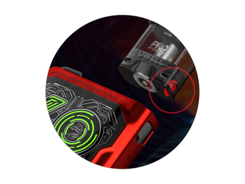Provoz celé e-cigarety již nemůže být jednodušší. Nedisponuje totiž žádnými ovládacími tlačítky. Po naplnění ji můžete začít užívat potažením z náustku, přičemž žhavení se spustí zcela automaticky. Na těle nebudete muset ani hlídat jakékoliv blikání diody, Caliburn GK2 Pod totiž disponuje speciální funkcí vibrační odezvy. V případě slabé baterie, nebo různých problémů během potahování jednoduše zavibruje. Ve vrchní části se nachází cartridge, kterou můžete znát z modelu Caliburn G2. Tato cartridge nabídne objem 2 ml, praktické vrchní plnění sejmutím náustku a boční regulaci přísunu vzduchu pro ještě lepší tuhost potahu. Je kompatibilní s tělísky FeCrAI UN2 Meshed-H, v balení najdete tělísko s odporem 0,8 ohm pro standardní náplně a tělísko 1,2 ohm pro nikotinové soli. Uwell Caliburn GK2 Pod Kit je ideální zařízení pro všechny, kdo se nebojí nekonvenčního designu a kdo očekávají perfektní výsledky při vapování a hladký MTL potah.