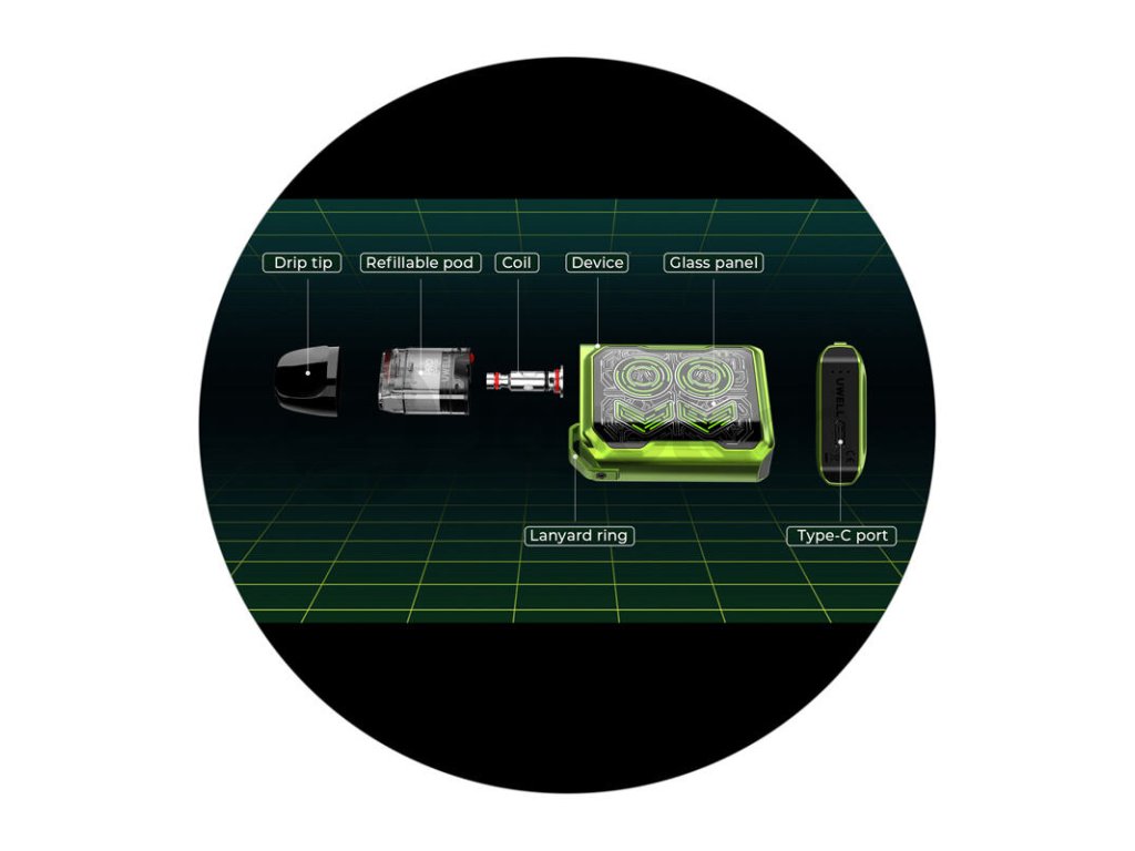 Elektronická cigareta Uwell Caliburn GK2 Pod Kit vychází z modelové řady KOKO PRIME, přičemž nabídne podobně laděnou ergonomickou konstrukci a futuristické vzezření. Rozměry těla činí 72,2 x 46,6 x 16,3 mm a perfektně padne do každé ruky. O pohodlné přenášení se postará také nízká hmotnost těla, která se zastavila na krásných 45,2 g. Uwell Caliburn GK2 Pod Kit je elegantní e-cigareta pro každodenní využití.