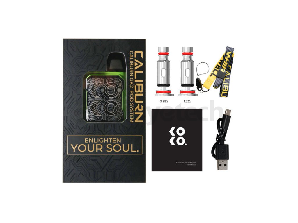 Uwell Caliburn GK2 Pod Kit je novým přírůstkem do rodiny populárních pod systémů Caliburn a zdařilým nástupcem oblíbeného kapesního modelu KOKO PRIME. Na první pohled láká na stylové dílenské zpracování, futuristický design s prvky cyberpunku a steampunku a na kompaktní rozměry. Tělo e-cigarety snadno schováte do kapsy a budete si ji moci vzít kamkoliv pohodlně s sebou. Disponuje rozměry těla 72,2 x 46,6 x 16,3 mm a jedinečnou nízkou hmotností, která se zastavila na krásných 45,2 g. Jedná se tak o ideálního společníka pro každodenní vaping. Uvnitř malého těla na vás čeká integrovaná baterie se solidní kapacitou 690 mAh pro dlouhé hodiny nerušeného potahování. V případě potřeby pak postačí kdykoliv připojit USB-C kabel k portu na těle a baterii budete moci kdykoliv opětovně dobít.