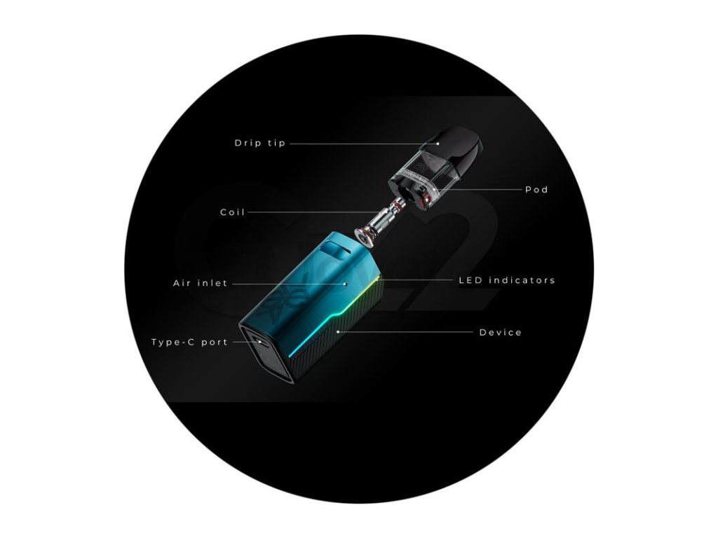 Na těle zařízení Caliburn GZ2 se nachází futuristická indikační LED dioda pro snadné a rychlé zjištění stavu baterie pomocí jedné ze tří barev. Během potahu navíc dioda svítí ve stylové Tron animaci, díky čemuž dodá celé e-cigaretě ještě modernější vzezření. Na těle e-cigarety Caliburn GZ2 se nenachází žádné ovládací tlačítko, veškeré parametry nastavuje e-cigareta automaticky. Vy si už poté můžete pouze potáhnout z náustku a žhavení se spustí zcela automaticky s optimálně nastaveným výkonem. Ve vrchní části je e-cigareta osazena oblíbenou cartridgí Caliburn G2 s objemem 2ml, funkcí vylamovacího vrchního plnění a spodní regulací airflow. Tato cartridge je kompatibilní s vyměnitelnými hlavami Caliburn G a G2, přičemž v základním balení najdete dvě mesh hlavy s odpory 0,8 ohm a 1,2 ohm pro MTL vaping. Pro co nejlepší podání chuti nesmí chybět ani oblíbená technologie Pro-FOCS. Uwell Caliburn GZ2 Pod Kit je luxusně zpracovaná e-cigareta se snadnou obsluhou a revolučním designem, kterou si ihned zamilujete.