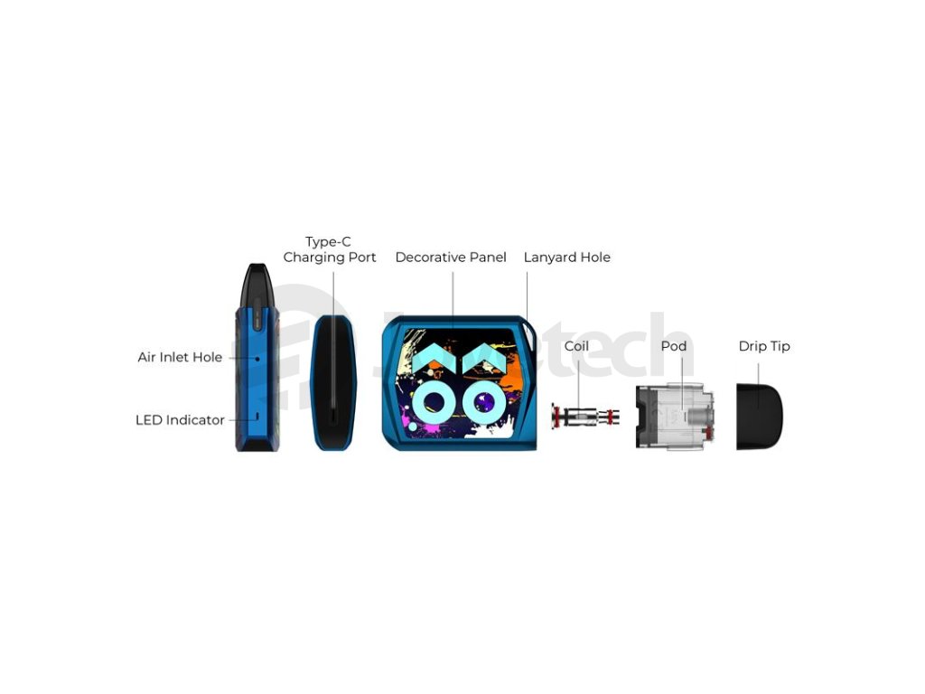 Novinkou je přítomnost vyměnitelných bočních panelů, které jsou k tělu přichyceny pomocí magnetů. Náhradní panely jsou v prodeji samostatně, můžete si sami zvolit, jaká barva panelů vám bude ladit nejvíce a přizpůsobit si tak vzhled e-cigarety přesně svým představám. Jedná se o příjemný doplněk už tak vyladěné e-cigarety.