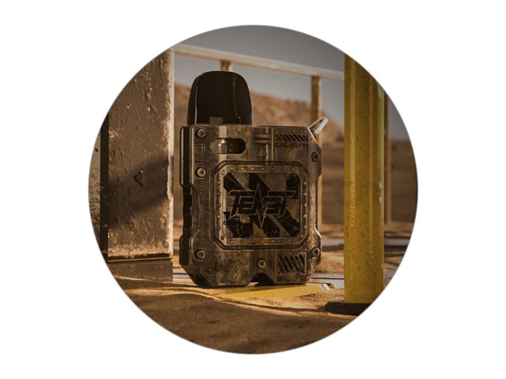 Pod systémy ze série Caliburn KOKO lákají na kompaktní rozměry a praktický čtvercový design, který perfektně padne do dlaně. U modelu Uwell Caliburn Tenet KOKO Pod Kit se k těmto praktickým rozměrům přidává také netradiční designové zpracování ze série Tenet, těšit se tak můžete na futuristicky zpracovanou e-cigaretu s kovovou konstrukcí z hliníkové slitiny a polyamidu, která dokáže zaujmout naprosto ve všech směrech. Futuristický a až postapokalyptický vzhled plný výrazných a netradičních konstrukčních prvků je tím správným řešením pro všechny milovníky nekonvenčního designu. E-cigareta nabídne rozměry 73.7 x 50 x 18 mm pro snadné přenášení a hmotnost 61,5 g pro co nejkomfortnější užívání. Uvnitř kompaktního těla na vás potom čeká integrovaná baterie s obrovskou kapacitou 950 mAh pro dlouhé hodiny intenzivního užívání. Baterii můžete kdykoliv dobít pomocí portu USB-C, zařízení podporuje dobíjení proudem až 2A.
