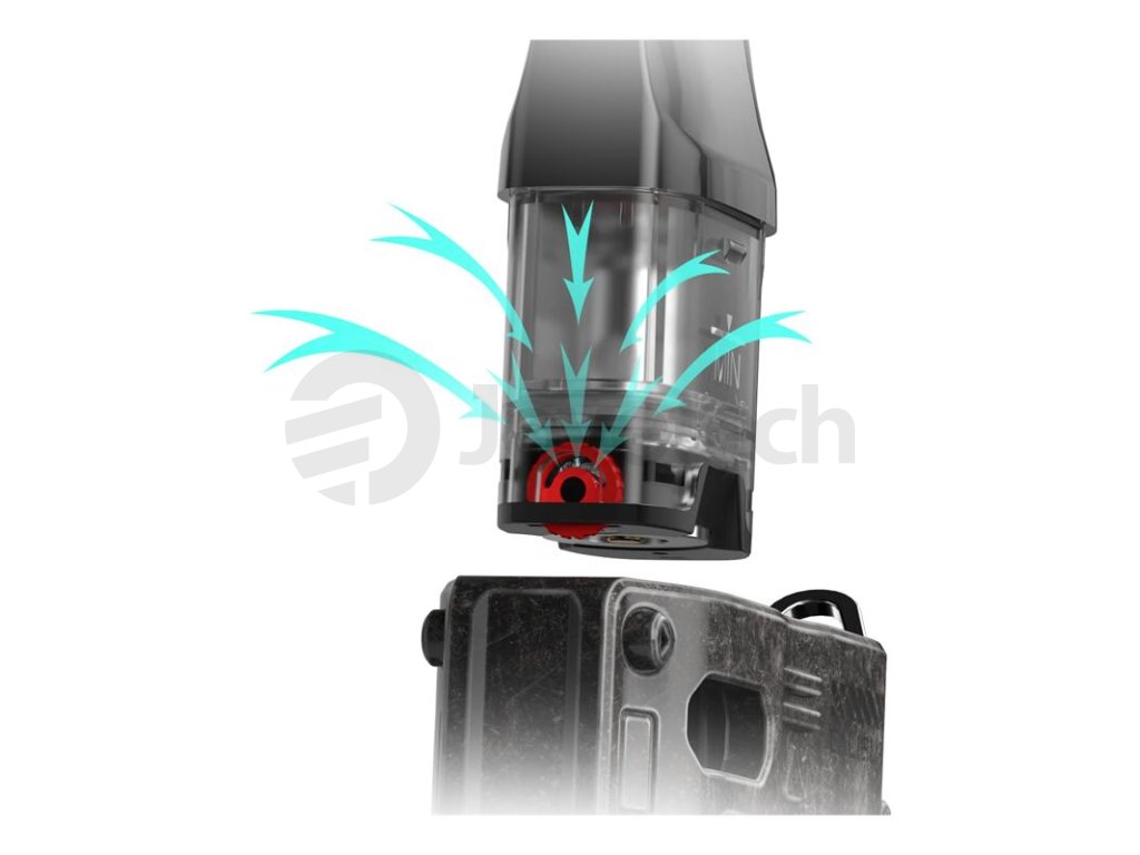 Zařízení Caliburn Tenet KOKO je kompatibilní s cartridgemi Caliburn G2. Tento typ cartridgí přináší inovativní vylepšení v podobě spodního regulačního kroužku pro přívod vzduchu. Otáčením si tak přizpůsobíte tuhost výsledného potahu svým představám a můžete se pohodlně rozhodovat mezi utaženějším, nebo vzdušnějším MTL vapingem.