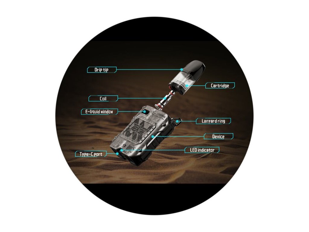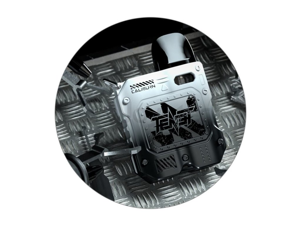 Pod systémy ze série Caliburn KOKO lákají na kompaktní rozměry a praktický čtvercový design, který perfektně padne do dlaně. U modelu Uwell Caliburn Tenet KOKO Pod Kit se k těmto praktickým rozměrům přidává také netradiční designové zpracování ze série Tenet, těšit se tak můžete na futuristicky zpracovanou e-cigaretu s kovovou konstrukcí z hliníkové slitiny a polyamidu, která dokáže zaujmout naprosto ve všech směrech. Futuristický a až postapokalyptický vzhled plný výrazných a netradičních konstrukčních prvků je tím správným řešením pro všechny milovníky nekonvenčního designu. E-cigareta nabídne rozměry 73.7 x 50 x 18 mm pro snadné přenášení a hmotnost 61,5 g pro co nejkomfortnější užívání. Uvnitř kompaktního těla na vás potom čeká integrovaná baterie s obrovskou kapacitou 950 mAh pro dlouhé hodiny intenzivního užívání. Baterii můžete kdykoliv dobít pomocí portu USB-C, zařízení podporuje dobíjení proudem až 2A.