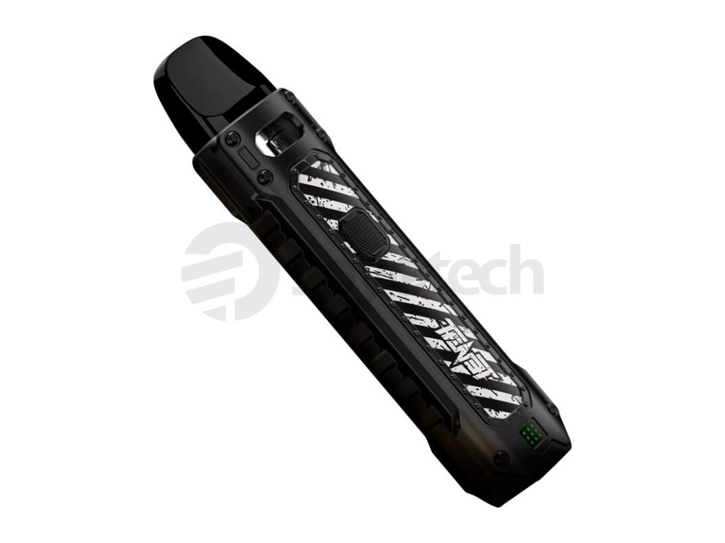 Netradiční designový přírůstek do série Caliburn se představuje pod tajemným názvem Uwell Caliburn Tenet Pod Kit. Jedná se o jednoduchý pod systém se stylovou výbavou, který se hodí jak pro začátečníky, tak také pro pokročilé uživatele a pro milovníky nekonvenčního designového zpracování. Uwell Caliburn Tenet Pod Kit přichází s futuristickým zpracováním a jednolitým tělem z hliníkové slitiny s polyamidovými doplňky. Esteticky vyladěný model nabídne nízkou hmotnost pouhých 50,4 g a vzhled, který evokuje robustnost a odolnost. V kompaktním těle s rozměry 110.9 x 25.1 x 16.3 mm se nachází integrovaná baterie se solidní kapacitou 750 mAh pro dlouhé hodiny nerušeného potahování. Ve spodní části najdete praktickou indikační LED diodu pro rychlé zjištění stavu baterie. Tu pak můžete kdykoliv dobít pomocí portu USB-C s podporu 2A nabíjení.
