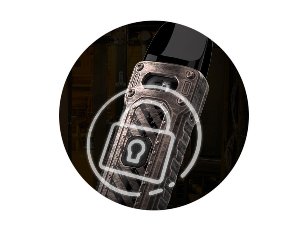 Uwell Caliburn Tenet Pod Kit je vybaven moderní funkcí zámku spínacího tlačítka. Jakmile stisknete tlačítko 2x rychle za sebou, uzamkne se, aby se samovolně nesepnulo například při přenášení v kapse. Skvěle poslouží také jako dětská pojistka a zároveň ochrání vaše zařízení kdykoliv a kdekoliv na cestách, kdy hrozí riziko nechtěného sepnutí.