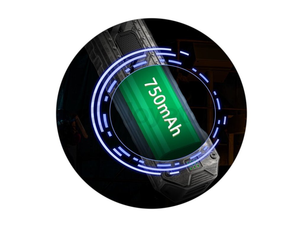 Uvnitř těla modelu Caliburn Tenet Pod Kit se ukrývá integrovaná baterie se solidní kapacitou pro dlouhé hodiny pohodového vapingu. Kapacita této baterie činí krásných 750 mAh. Hravě si tak poradí také s intenzivnějším vapováním. O stavu baterie vás neustále informuje LED dioda v přední části, v případě potřeby ji postačí dobít pomocí portu USB-C proudem až 2A.
