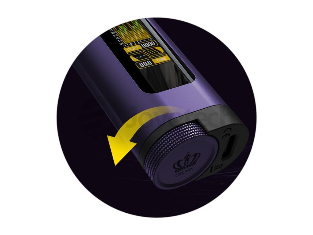 Všechny parametry na jednom místě. Přední část e-cigarety Crown D zdobí obrovský a přehledný displej, na kterém budete mít neustálý přehled o nastaveném výkonu či napětí, o stavu baterie, odporu spirálky, nebo o počtu potahů. Rozhraní je navrženo s obrovským citem pro detail a snadnou a rychlou přehlednost, velice rychle si osvojíte celkové ovládání a do používání e-cigarety Crown D se doslova zamilujete.