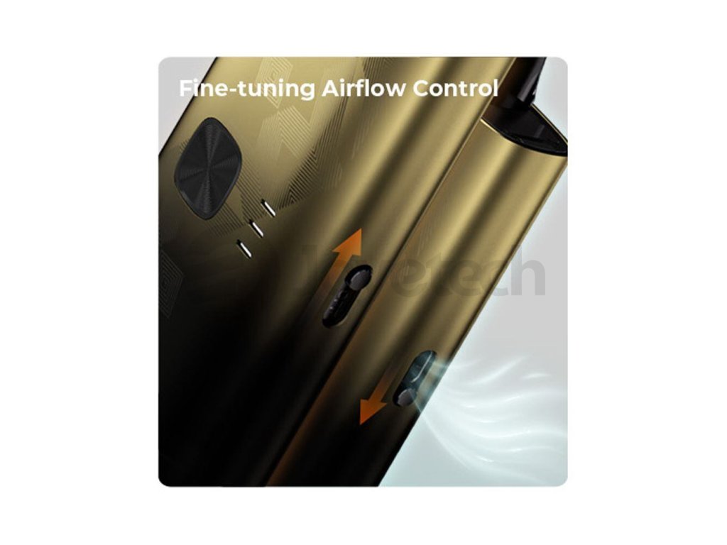 V boční části se nachází tradiční manuální regulace airflow, která umožní pohodlné nastavení tuhosti potahování. Vše zvládnete nastavit jednoduchým pohybem prstu a doslova za pár vteřin. Airflow regulace umožní dostatečně pohodlné nastavení proudění vzduchu pro všechny typy cartridgí Crown S.