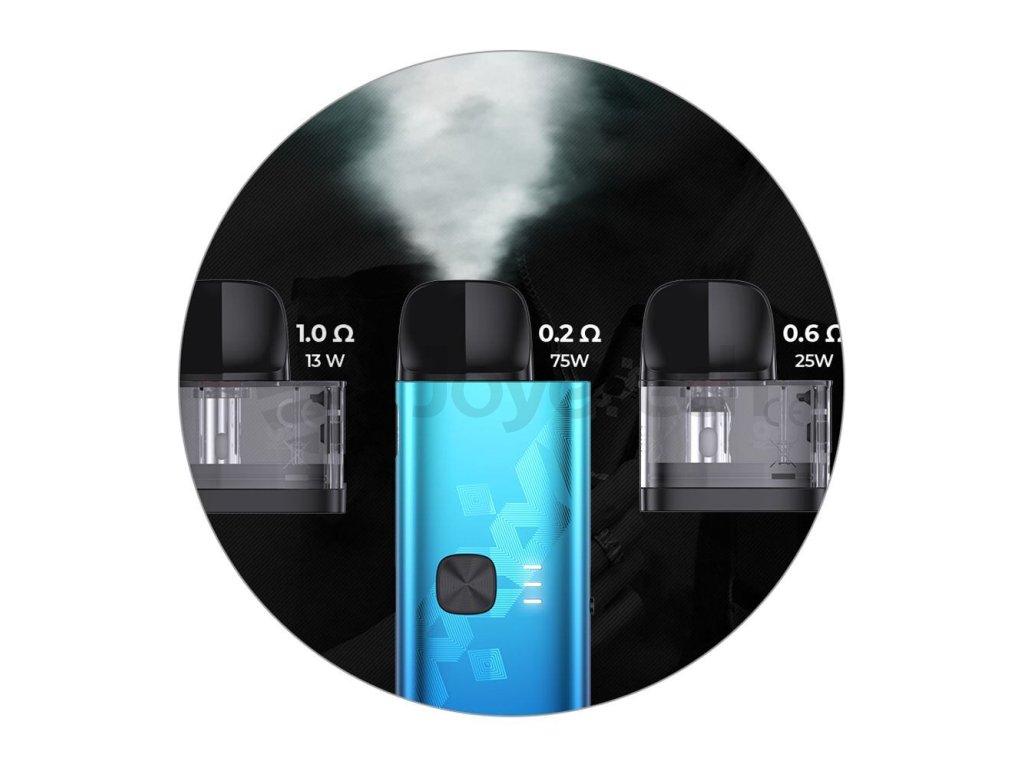 Obáváte se přechodu z atomizéru na pod? Výrobce Uwell navrhl cartridge k modelu Crown S Pod specificky pro chuťové potřeby milovníků klasických atomizérů. Svým podáním chuti se tedy atomizérům hravě vyrovnají, k dispozici jsou navíc v různých odporech pro všechny typy vapování. V základním balení najdete cartridge s odporem 0,2ohm pro DL a cartridge s odporem 0,6ohm pro RDL vaping. Samostatně si můžete také pořídit cartridge s odporem 1,0ohm pro MTL šlukování.