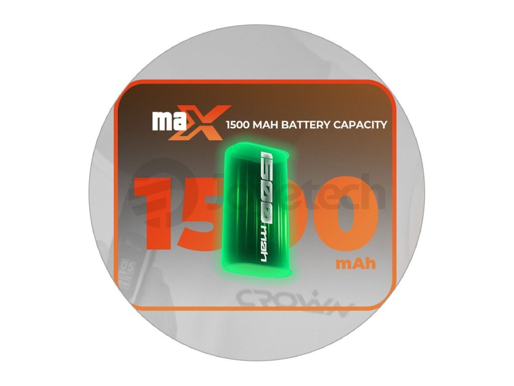 Tělo zařízení ukrývá integrovanou baterii s ohromující kapacitou 1500mAh. Díky této kapacitě hravě zvládne nejen strhující výkon, ale nabídne také dlouhou výdrž pro pohodlné každodenní používání. Baterie navíc disponuje celou řadou ochran pro pohodový a nerušený zážitek z vapování.