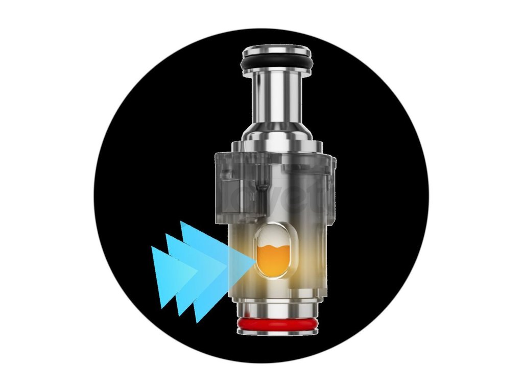 Díky této intuitivní technologii se prodlužuje životnost celé cartridge zejména při každodenním provozu, ale také při delší době neaktivity se stále naplněnou cartridgí. Už se nemusíte obávat nadměrného přehlcování vaty e-liquidem nebo vyprskávání a praskání v důsledku usazení nahromaděného e-liquidu na spirále. Bez starostí tak můžete své zařízení odložit i na delší dobu a nemusíte se bát, že dojde k poškození nebo k úplnému opotřebení a znehodnocení vaty.
