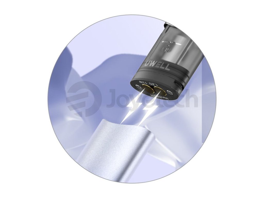 Ve vrchní části se nachází nová cartridge Uwell Kalmia. Cartridge disponuje objemem 1,6 ml a nabídne vynikající podání chuti díky integrovanému mesh tělísku FeCrAl UN2 Meshed-H s odporem 1,2 ohm. Dodá tak každému potahu věrné a prokreslené podání chuti, ale také optimální tuhost pro co nejlepší požitek z klasického šlukování.