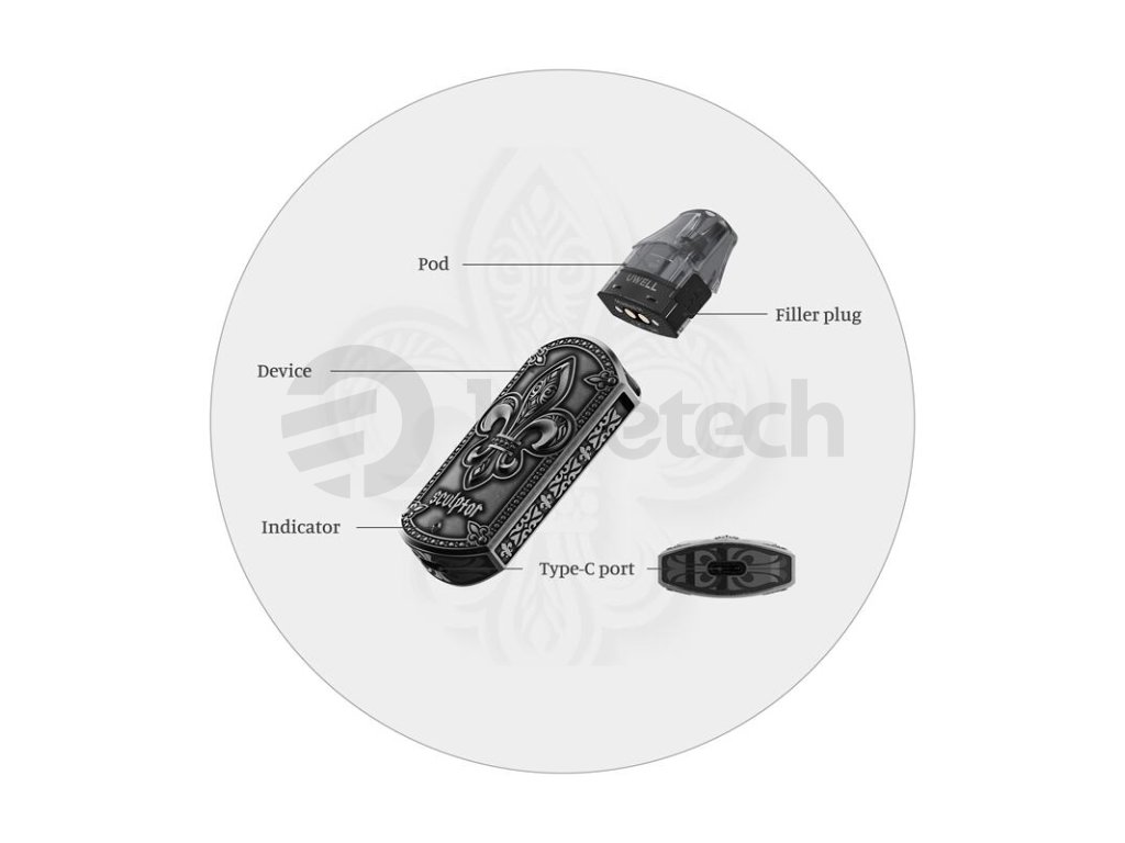 Uwell Sculptor Pod Kit je elegantní a nádherná e-cigareta, která se pyšní kovovou konstrukcí z kombinace zinkové slitiny, mědi a dalších materiálů. Její panel potom zdobí nádherná rytina v podobě Fleur de lis, heraldický znak lilie. Model Sculptor je geniální ukázkou pečlivého vývoje a vytříbeného vkusu designérů ze společnosti Uwell.