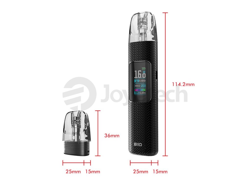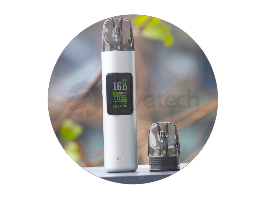 Vandy Vape BIIO Pod Kit je všestranný pod systém pro každodenní použití. E-cigareta je poháněna integrovanou baterií se strhující kapacitou 1000mAh pro uspokojení každodenních vaperských potřeb. Díky velkému displeji a možnosti nastavení výstupního výkonu umožňuje snadnou a regulaci všech hodnot a rychlou kontrolu všech potřebných parametrů. O co nejlepší chuť se potom stará platforma mesh cartridgí BIIO Pod s objemem 2ml, praktickým plněním a dlouhou životností, stejně jako praktický manuální systém regulace vzduchu. Vandy Vape BIIO Pod Kit se na poli kapesních pod systémů řadí mezi opravdovou špičku.
