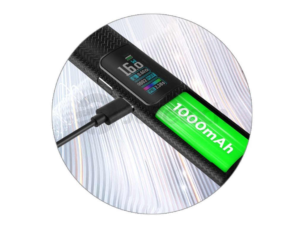 V jádru zařízení se nachází integrovaná baterie s obrovskou kapacitou 1000mAh pro dlouhé hodiny intenzivního vapování s minimem nabíjení. V případě nutnosti potom stačí pouze připojit USB-C kabel a baterii si můžete kdykoliv dobít. Lze dobíjet proudem až 1A.