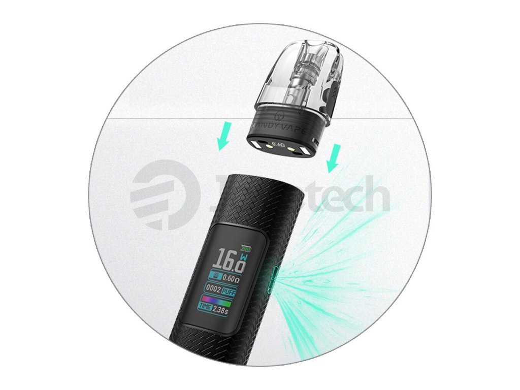 V jádru zařízení se nachází integrovaná baterie s obrovskou kapacitou 1000mAh pro dlouhé hodiny intenzivního vapování s minimem nabíjení. V případě nutnosti potom stačí pouze připojit USB-C kabel a baterii si můžete kdykoliv dobít. Lze dobíjet proudem až 1A.