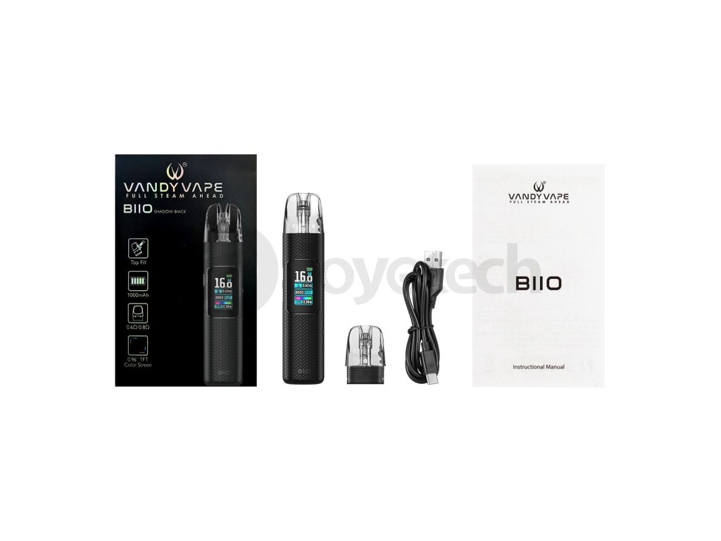 Vandy Vape BIIO Pod Kit je všestranný pod systém pro každodenní použití. E-cigareta je poháněna integrovanou baterií se strhující kapacitou 1000mAh pro uspokojení každodenních vaperských potřeb. Díky velkému displeji a možnosti nastavení výstupního výkonu umožňuje snadnou a regulaci všech hodnot a rychlou kontrolu všech potřebných parametrů. O co nejlepší chuť se potom stará platforma mesh cartridgí BIIO Pod s objemem 2ml, praktickým plněním a dlouhou životností, stejně jako praktický manuální systém regulace vzduchu. Vandy Vape BIIO Pod Kit se na poli kapesních pod systémů řadí mezi opravdovou špičku.