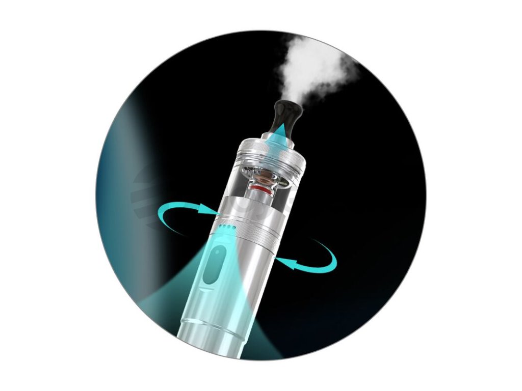 Přímo nad spínacím tlačítkem se nachází kroužek pro regulaci airflow, který slouží pro plynulé nastavení přívodu vzduchu do atomizéru během potahu. Otáčením kroužku si tak přizpůsobíte velikost vzduchových otvorů a ovlivníte tím výslednou tuhost potahu. Ať už preferujete volnější, nebo utaženější potah, s tímto modelem si snadno vyzkoušíte obě varianty.