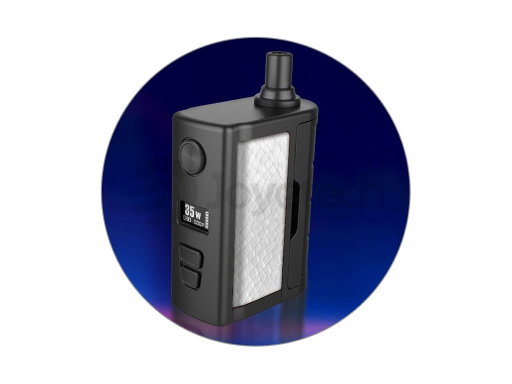 Cartridge u modelu je velice důmyslně ukryta přímo v těle e-cigarety, aby byly zachovány praktické kompaktní rozměry. Po odklopení bočního panelu poté můžete cartridge vsadit přímo do těla. Její objem činí 4 ml, doplníte tak do ní potřebné množství e-liquidu pro dlouhé hodiny nerušeného potahování. Cartridge výborně prokreslí chuť e-liquidu a každý potah za to rozhodně stojí.