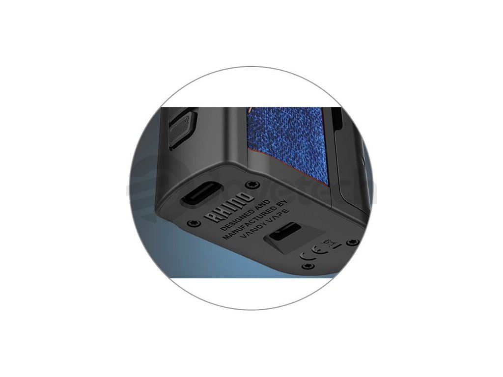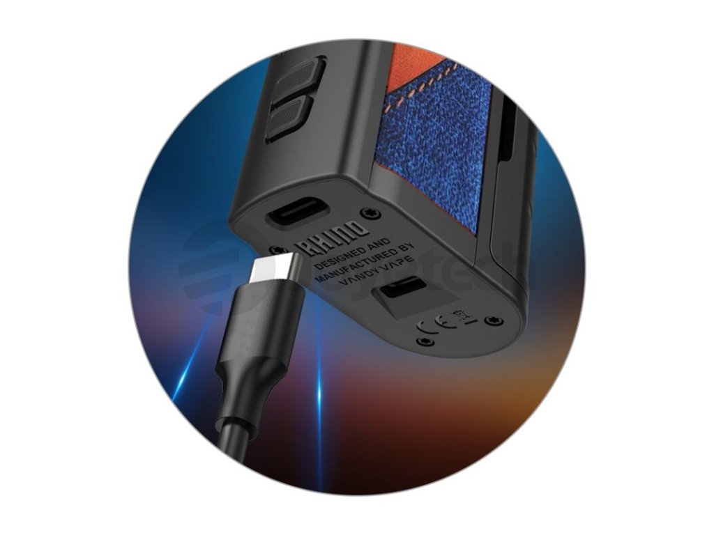 Uvnitř kompaktního těla modelu Rhino Pod na vás čeká baterie s obrovskou kapacitou 1200 mAh, která se postará o hladký mnohahodinový provoz bez potřeby dalšího napájení. Pokud však na samotné dobíjení přeci jen dojde, jednoduše připojíte USB-C kabel z balení a baterii si kdykoliv pohodlně dobijete. Slot pro připojení kabelu se nachází ve spodní části e-cigarety.
