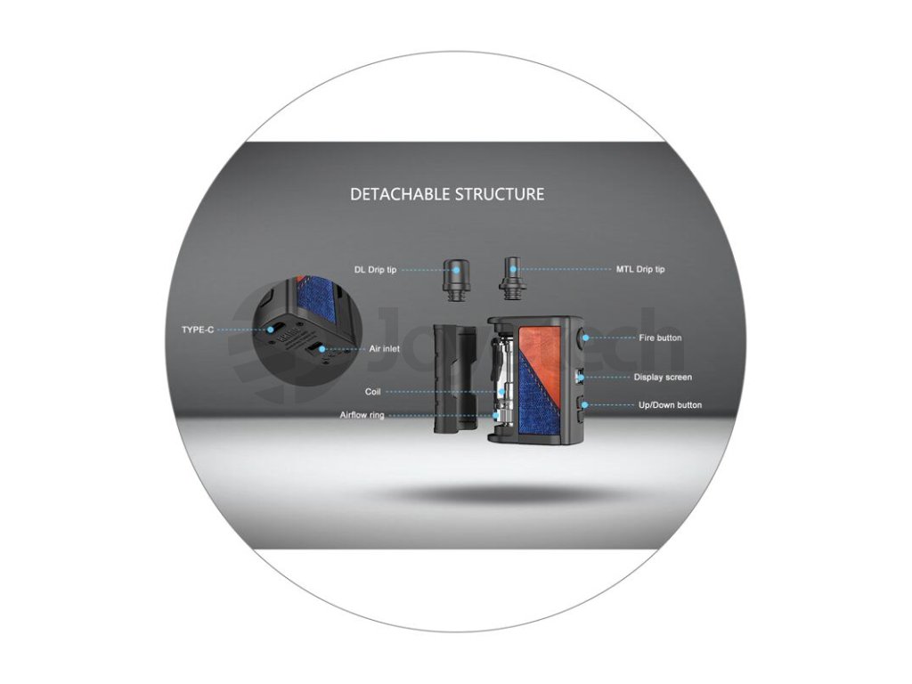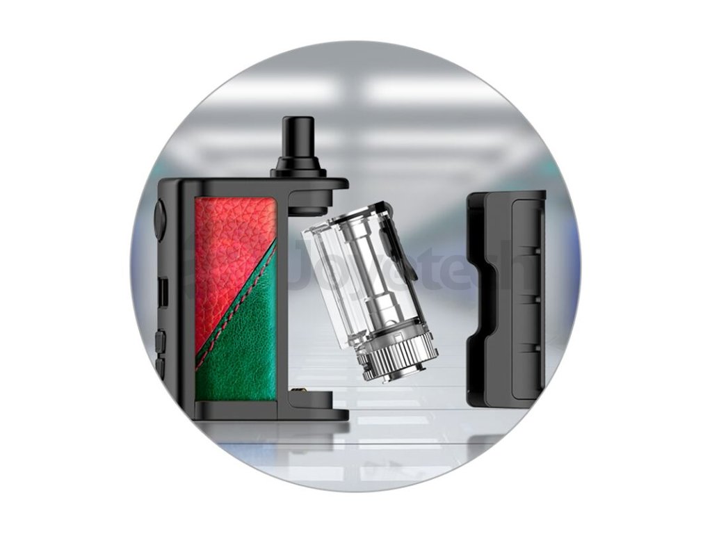 Cartridge u modelu je velice důmyslně ukryta přímo v těle e-cigarety, aby byly zachovány praktické kompaktní rozměry. Po odklopení bočního panelu poté můžete cartridge vsadit přímo do těla. Její objem činí 4 ml, doplníte tak do ní potřebné množství e-liquidu pro dlouhé hodiny nerušeného potahování. Cartridge výborně prokreslí chuť e-liquidu a každý potah za to rozhodně stojí.