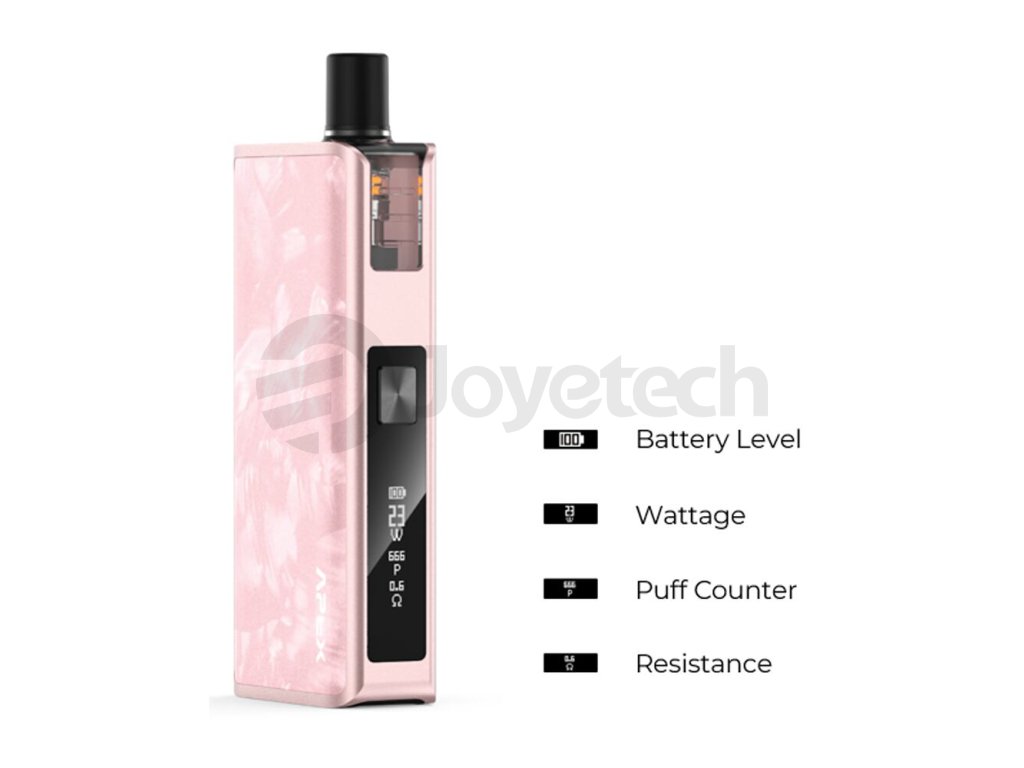Jednou z hlavních výsad modelu Vaporesso APEX je přítomnost elektronického čipsetu s možností nastavení výstupního výkonu. Ten lze regulovat v rozpětí 5 - 30W, snadno si tak přizpůsobíte výkon svým potřebám a můžete si užívat volnější i utaženější styl potahování.