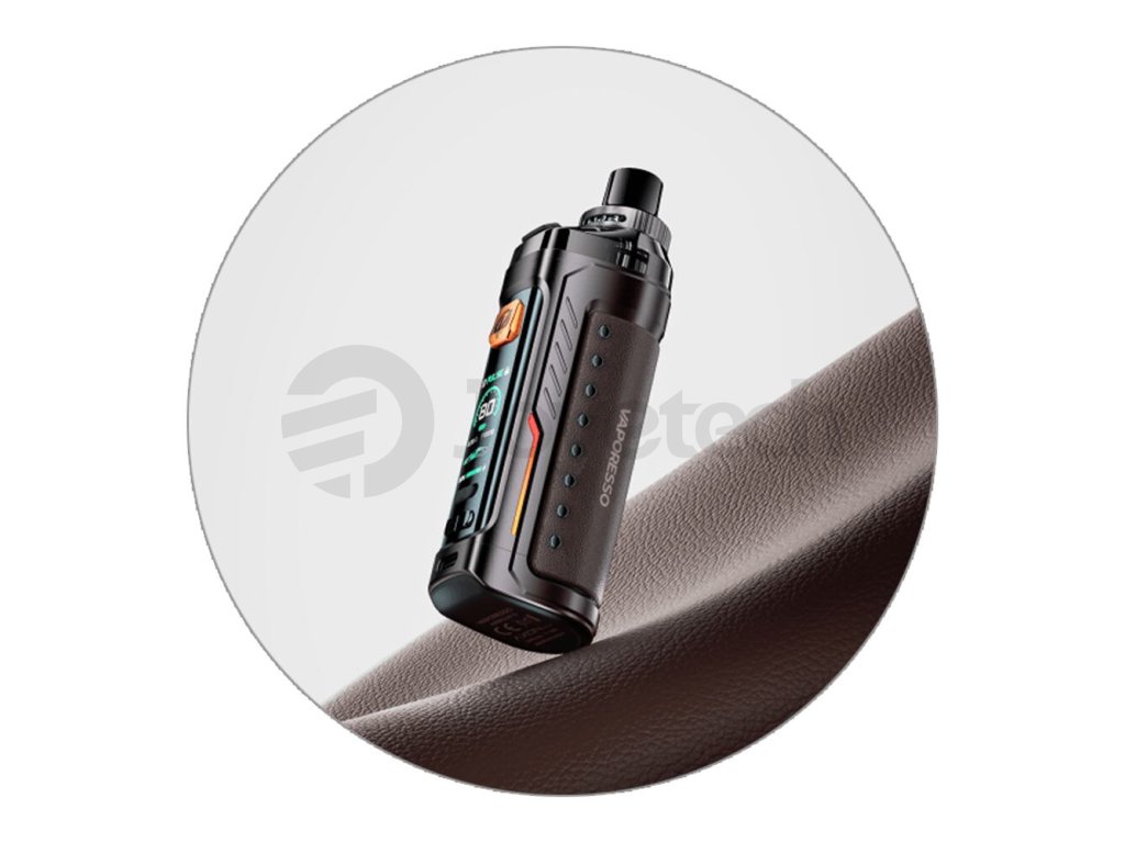 Luxusně zpracovaný pod mod Armour G se pyšní bytelnou kovovou konstrukcí a krásně zpracovanými koženými panely. Nabídne také perfektní ergonomii pro pohodlné držení v dlani během používání. Zadní zaoblená část krásně kopíruje vaši dlaň a vapování vás tak bude doslova bavit. Oproti jiným pod modům s podobnými vlastnostmi navíc nabídne až o 30% menší konstrukci, celkové rozměry se zastavily na krásných 113 x 38 x 28 mm.