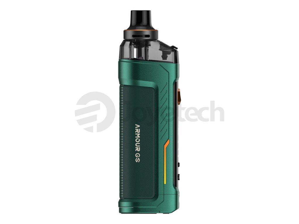 Luxusně zpracovaný pod mod Armour GS se pyšní bytelnou kovovou konstrukcí a krásně zpracovanými koženými panely. Nabídne také perfektní ergonomii pro pohodlné držení v dlani během používání. Zadní zaoblená část krásně kopíruje vaši dlaň a vapování vás tak bude doslova bavit. Oproti jiným pod modům s podobnými vlastnostmi navíc nabídne až o 30% menší konstrukci, celkové rozměry se zastavily na krásných 126 x 39 x 28 mm.