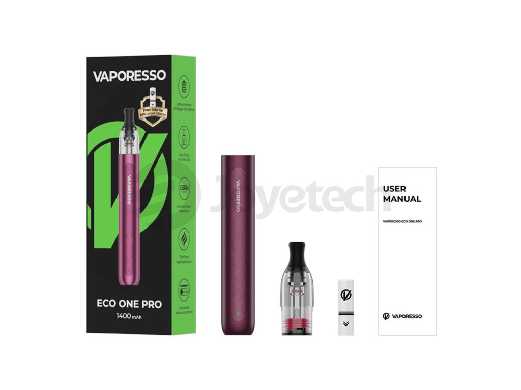 Vaporesso ECO ONE Pro pokračuje v tradici kompaktních zařízení rodiny ECO a mezigeneračně přináší opět několik zásadních vylepšení. Těmi jsou podstatně silnější baterie, systém horního plnění, možnost regulace tuhosti potahu, inovovaná technologie chuti COREX SMOOTH a možnost volby mezi klasickým a filtrovým náustkem. Přidejte k tomu lety prověřenou pen-style konstrukci, naprosto precizní zpracování a máte zaručený recept na nejlepší e-cigaretu ve své kategorii.