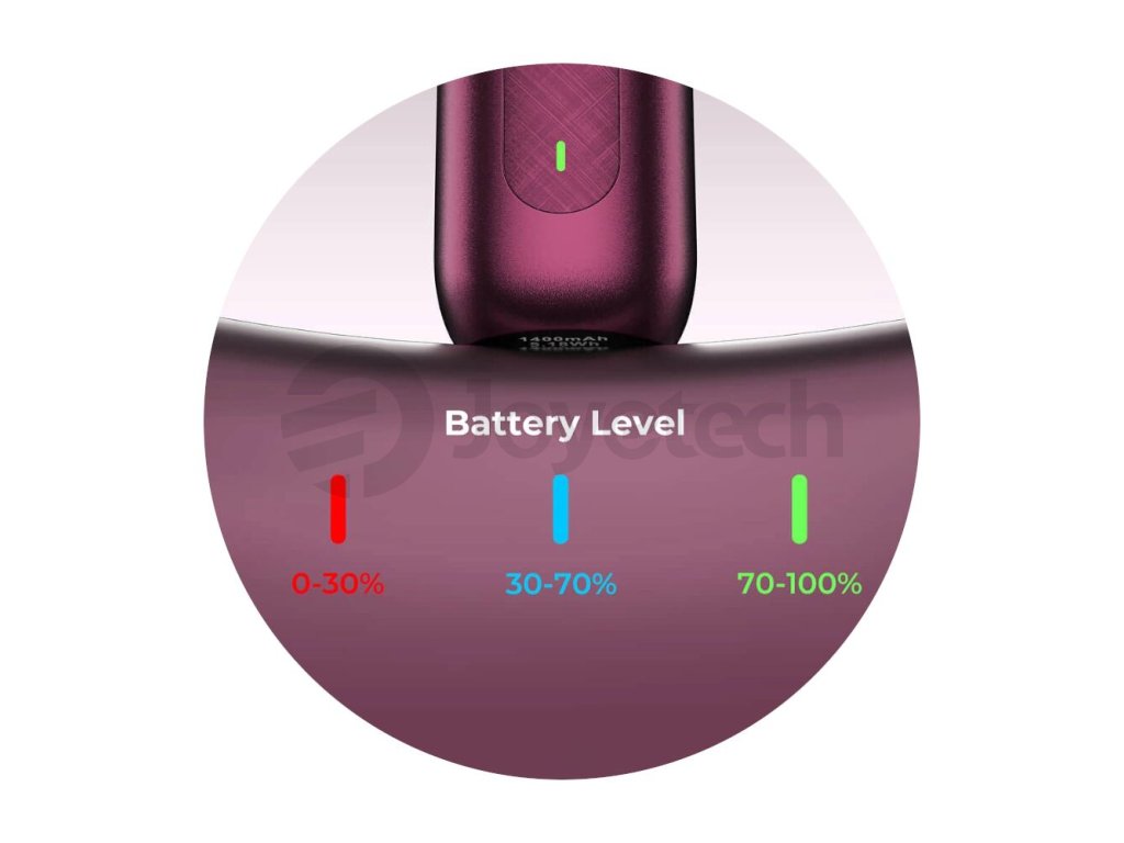 Na přední straně e-cigarety nesmí chybět jednoduchý LED indikátor, který informuje uživatele o zbývající kapacitě integrované baterie. Pomocí tří barevných signálů snadno odhadnete, zdali jste ještě v pohodě a kdy už je třeba vyhledat nabíječku. Baterii opětovně nabijete skrze moderní USB-C konektor proudem až 1 A.