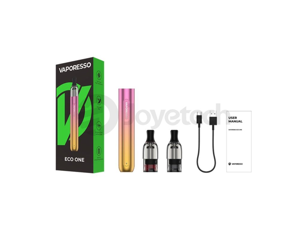 Přejděte na vaping rychle a snadno s modelem Vaporesso ECO ONE Pod Kit. Jedná se o ideální zařízení pro milovníky výrazné chuti ve spojení s příjemnou tuhostí potahu, která plně nahradí běžné cigarety a dodá uspokojující požitek při každém potahu. E-cigareta je vybavena oblíbenou technologií COREX pro plnou a výraznou chuť a integrovanou baterií s velkou kapacitou 1100 mAh pro dlouhou výdrž na jedno nabití. Díky kompaktním rozměrům, tradiční pen style konstrukci a jemnému náustku se silikonovým soft touch povrchem se při každém potahu přenesete do ráje.