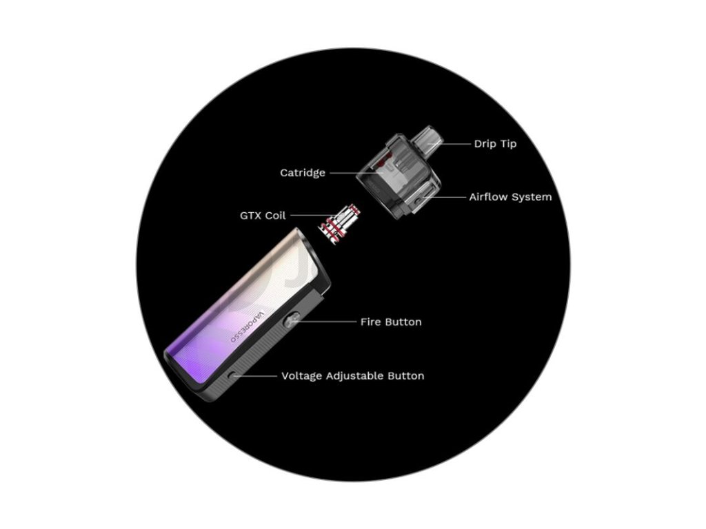 Vaporesso GEN Air 40 Pod Kit je pokročilý pod systém vhodný pro vzdušnější MTL a utaženější RDL vaping s maximálním výkonem 40 W, který láká hlavně na velice nízkou hmotnost a krásné designové zpracování. Model se představuje v celé řadě stylových barevných variant. Tělo je poháněno integrovanou baterií s kapacitou 1800 mAh. Tato baterie se postará o efektivní náběh žhavení, dlouhou výdrž a bezproblémový chod. O aktuálním stavu baterie budete mít neustálý přehled díky panelu s diodami v přední části. V případě potřeby potom stačí sáhnout po USB-C kabelu a baterii můžete kdykoliv dobít. Zařízení podporuje dobíjení proudem až 2,5 A. Mimo integrovanou baterii se v těle modelu GEN Air 40 Pod nachází také oblíbený čipset AXON pro perfektní výsledky během vapování. Inteligentní čip se také postará o jednoduché nastavení výkonu, který volí automaticky dle nastaveného režimu výstupního napětí a dle odporu tělíska. Výstupní napětí lze jednoduše měnit pomocí malého tlačítka ve spodní části na předním panelu.