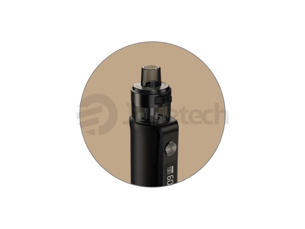 Ve vrchní části se nachází nová cartridge / tank s názvem Vaporesso X Tank Pod. Tato cartridge vyniká hned v několika ohledech. Zejména potom nabídne velký objem 4,5 ml, zaujme však také inovativním dvojím vrchním systémem kombinujícím regulaci airflow a plnění. Všechno tak najdete pohodlně na jednom místě, provoz je nesmírně snadný a intuitivní.