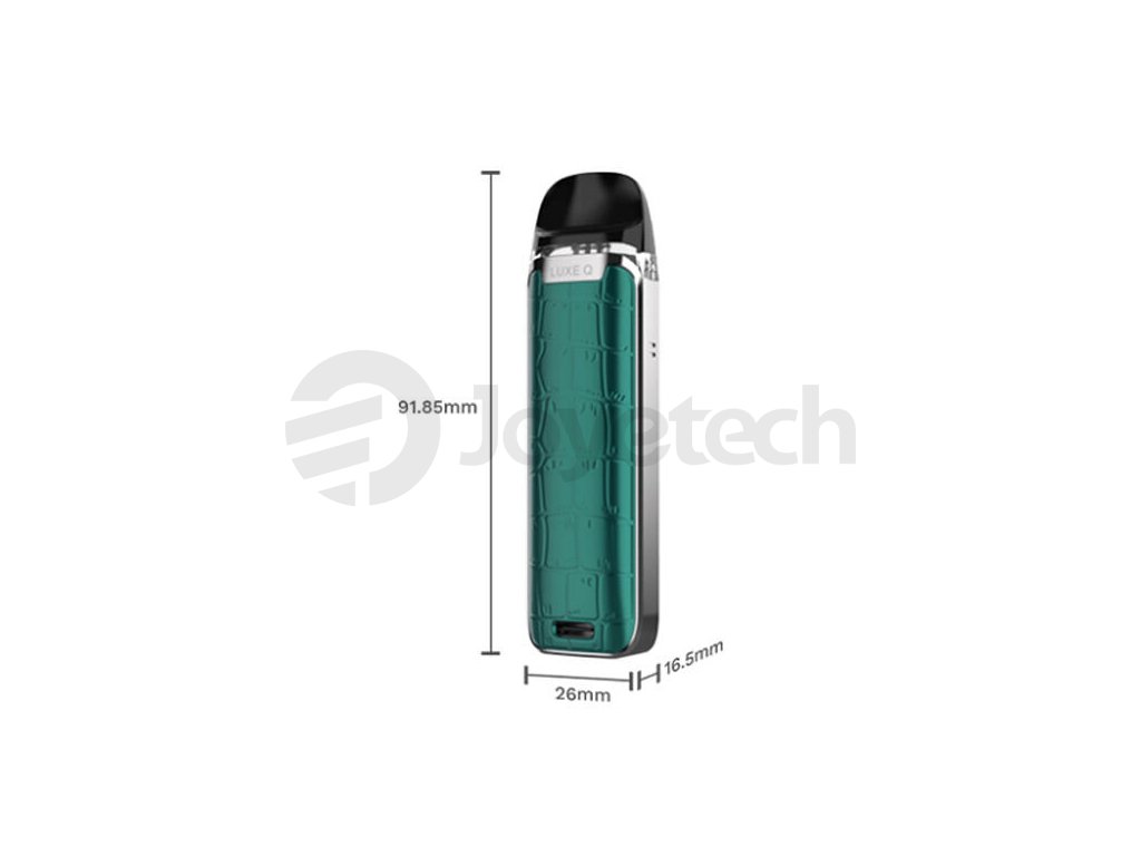 Vaporesso LUXE Q Pod Kit je kompaktní elektronická cigareta typu pod, která láká na moderní design a velkou kapacitu baterie. Cílí na příznivce klasického šlukování a na začátečníky, kteří hledají jednoduché zařízení bez složitého nastavování. Je tvořena pouze dvěma částmi, tělem baterie a cartridgí na e-liquid. Rozměry celé e-cigarety činí jen 91,85 x 26 x 16,5 mm. Díky tomu si ji snadno schováte do kapsy a pohodlně se drží v ruce. I přes své kompaktní rozměry disponuje integrovanou baterií s obrovskou kapacitou 1000 mAh. Tato baterie si poradí s intenzivním mnohahodinovým provozem bez nutnosti nabíjení. O stavu baterie jste informováni pomocí LED diody na těle. V případě potřeby dobití pak sáhnete po USB-C kabelu a pohodlně ji dobijete. Při zvolení 1 A adaptéru se dokáže dobít už za jednu hodinu.