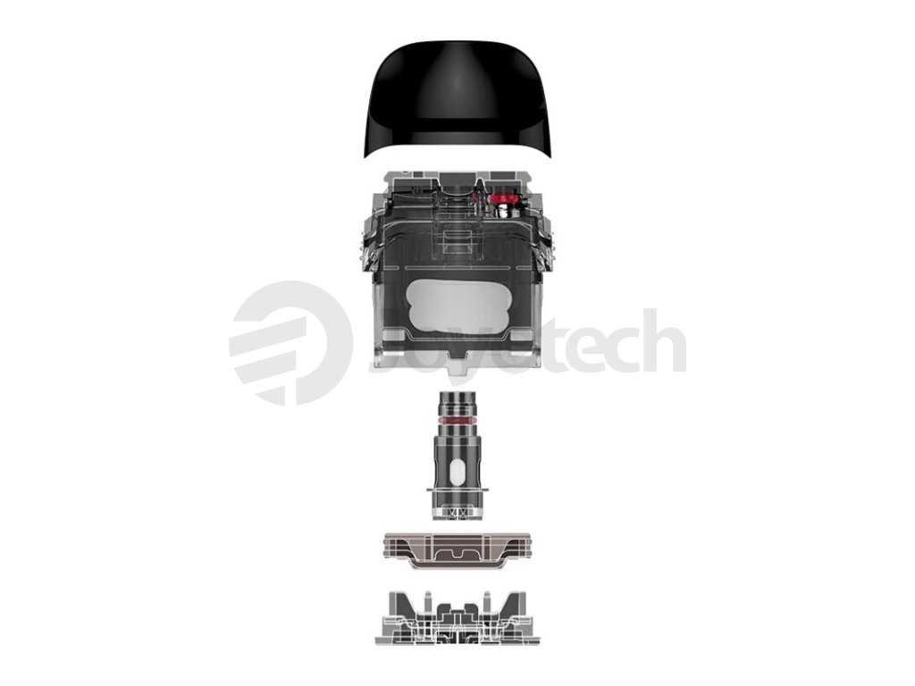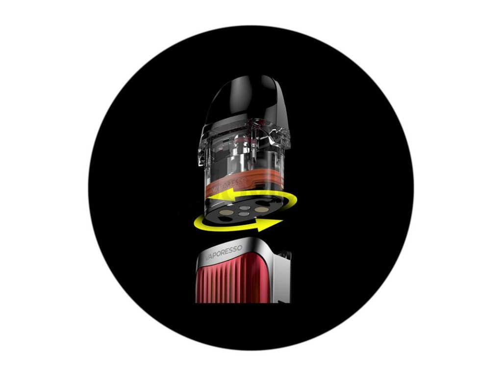 Součástí základního balení jsou dvě nové cartridge ze série Vaporesso LUXE Q. Tyto cartridge nabídnou pečlivě navrženou konstrukci s technologií SSS Leak-Resistant, výborné podání chuti, objem 2 ml a integrovaná tělíska s mesh pletivem. První cartridge disponuje odporem 0,6 ohm a je vhodná pro vzdušnější potah. Druhá cartridge nabídne odpor 1,0 ohm a je ideální pro utažené potahování a pro užívání nikotinových solí. Zařízení je zpětně kompatibilní také s první generací cartridgí LUXE Q.