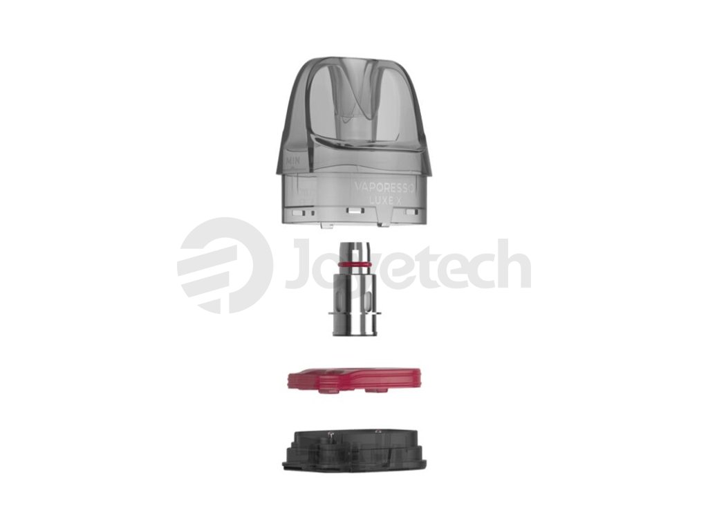 Součástí balení jsou hned dvě cartridge z oblíbené platformy Vaporesso LUXE X. Obě jsou opatřeny technologií COREX pro co nejvýraznější chuť, v jejich jádru se tedy nachází mesh pletivo s rychlým náběhem žhavení a velkou odpařovací plochou. Obě nabídnou také obrovský objem 5 ml. První z nich disponuje odporem 0,4 ohm (DL) a druhá nabídne odpor 0,6 ohm (RDL). Zařízení je kompatibilní také s dalšími pody ze série LUXE X, které se dají pořídit samostatně.