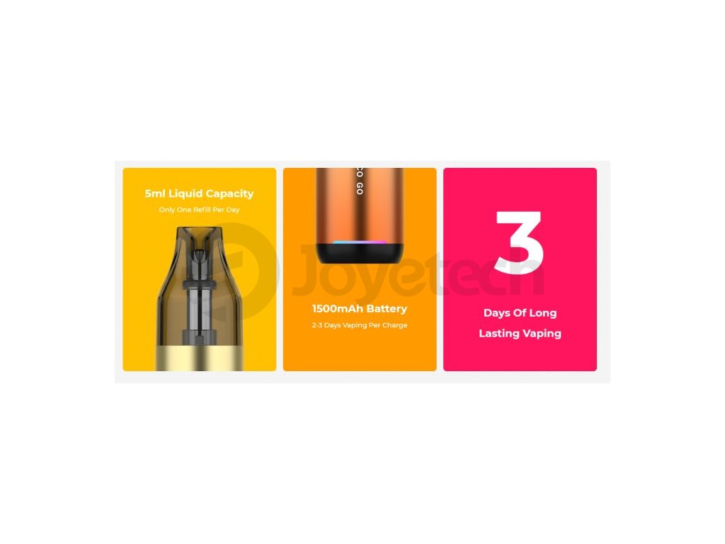 Elektronická cigareta Vaporesso VECO GO je perfektní vapovací zařízení ve stylu pera pro začátečníky, kteří hledají jednoduchost bez kompromisů v kvalitě vapingu. Elegantní a stylový designe baterie disponuje vestavěným monočlánkem o kapacitě 1500mAh s rychlonabíjením typu USB-C 5V/2A a automatickým výkonem až 25W. Vyměnitelná cartridge (POD) je vybavena žhavící hlavou o odporu 0,6ohm a 0,8ohm s objemem nádržky 5ml. Díky magnetickému propojení s baterií lze cartridge jednoduše vyjmout a doplnit oblíbeným liquidem. VECO GO využívá technologii zahřívení spirálky COREX, která zajišťuje přesné podání chuti a delší životnost. Magnetická podložka umožňuje regulaci proudění vzduchu pro optimální nastavení.
