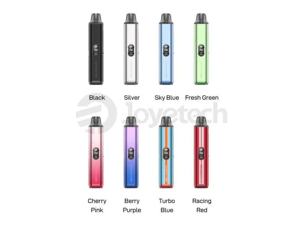 Vaporesso Vibe Pod Kit. Novinka zaujme nejen moderním vzhledem, ale především inovativní technologií Dual Mesh Coil, která přináší plnější chuť liquidu a delší životnost cartridge. Tělo baterie je vyrobeno z lehkého a odolného materiálu, který v sobě ukrývá monočlánek o kapacitě 1100mAh s rychlým USB-C nabíjením (5V/2A) a výkonným čipem AXON. Ten umožňuje přepínání mezi režimy ECO (úsporný výkon) a PWR (plný výkon), přičemž zařízení zároveň umožňuje regulaci airflow a přizpůsobení potahu od utaženého po volný. Na přední straně je barevný 0,54" TFT displej, který informuje o stavu baterie i aktuálním režimu. Vyměnitelná cartridge o objemu 4,5ml je navržena pro maximální výdrž.