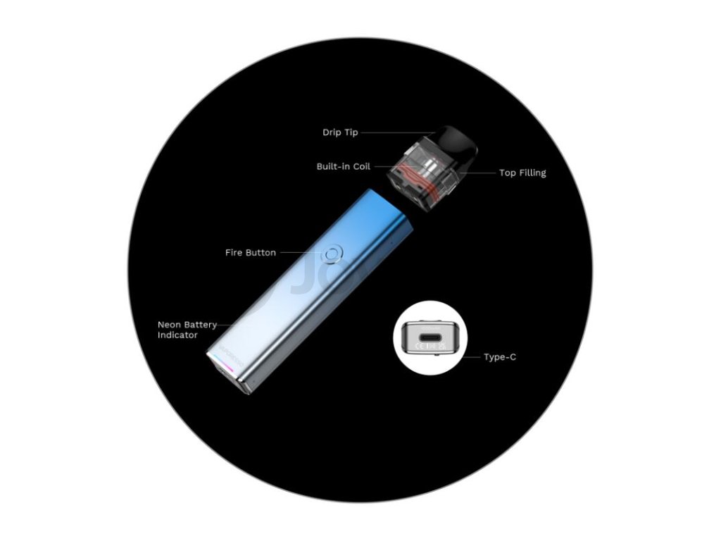 Uvnitř kompaktního těla e-cigarety se nachází integrovaná baterie se solidní kapacitou 1000 mAh, která si poradí s až celodenní výdrží. Baterii můžete kdykoliv pohodlně dobíjet prostřednictvím portu USB-C přímo na těle e-cigarety. Zajímavou novinkou je také přítomnost neonové LED diody umístěné ve spodní části, která nejen příjemně dokreslí celkový design, ale zároveň poslouží jako optimální indikátor stavu baterie pro včasné dobití.