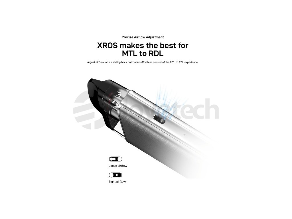 Nastavitelný airflowPraktická manuální regulace přívodu vzduchu umožňuje přesné nastavení tuhosti potahu podle vašich preferencí. Posouváním páčky na těle zařízení otevíráte nebo zavíráte otvor pro přívod vzduchu ke cartridgi. Můžete si tak vybrat mezi volnějším RDL stylem nebo utaženějším MTL potahováním pro optimální vapovací zážitek. |