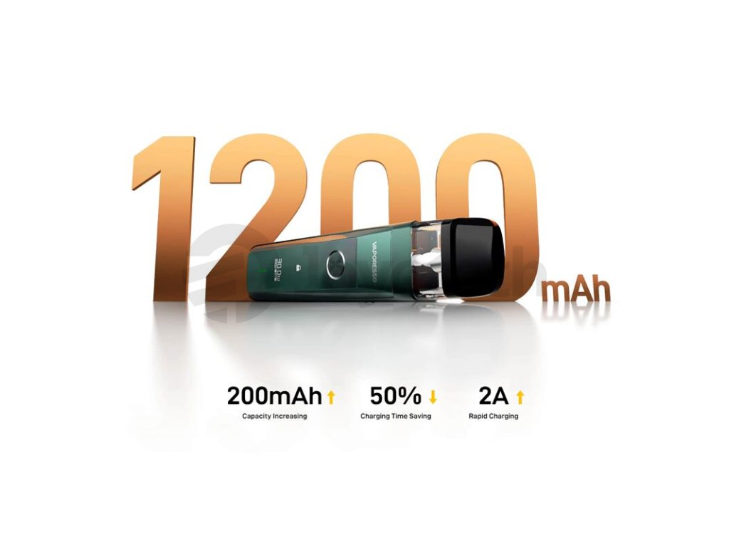 Důležitým prvkem zařízení XROS Pro je zejména jeho baterie. V těle se nachází integrovaná baterie s ohromující kapacitou 1200 mAh pro dlouhé hodiny intenzivního potahování. Velkou baterii oceníte právě při vapování s vyšší produkcí páry, klasickým MTLkařům potom nabídne skutečně dlouhou výdrž s minimem nabíjení. Zařízení zároveň podporuje rychlé 2A nabíjení prostřednictvím moderního rozhraní USB-C.