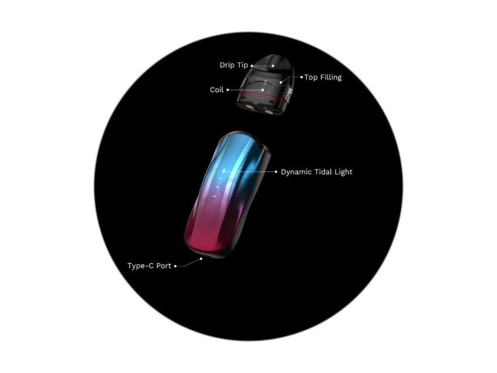 Při dobíjení vás potěší přítomnost portu USB-C s dobíjecím proudem až 1 A. Do plné kapacity se baterie zvládne dobít už za 45 minut při zvolení kompatibilního adaptéru. Nesmí chybět ani prvotřídní elektronika s řadou bezpečnostních prvků pro baterii i cartridge. Samotná cartridge Zero 2 ve vrchní části nabídne objem 2 ml a přepracované plnění po sejmutí vrchního náustku. Cartridge nabídnou technologii SSS Leak-Resistant, která zamezuje častému vzniku přebytečného kondenzátu díky speciálnímu úložišti ve spodní části. Cartridge disponuje ve svém jádru mesh pletivem s odporem 1,0 ohm, nabídne tak příjemně rychlé žhavení, optimální tuhost potahu a vynikající podání chuti. Žhavení probíhá u modelu Zero 2 zcela automaticky, jednoduše ji naplníte, vyčkáte pár minut a potáhnete. Jedná se o jednoduchý pod systém pro každodenní používání.