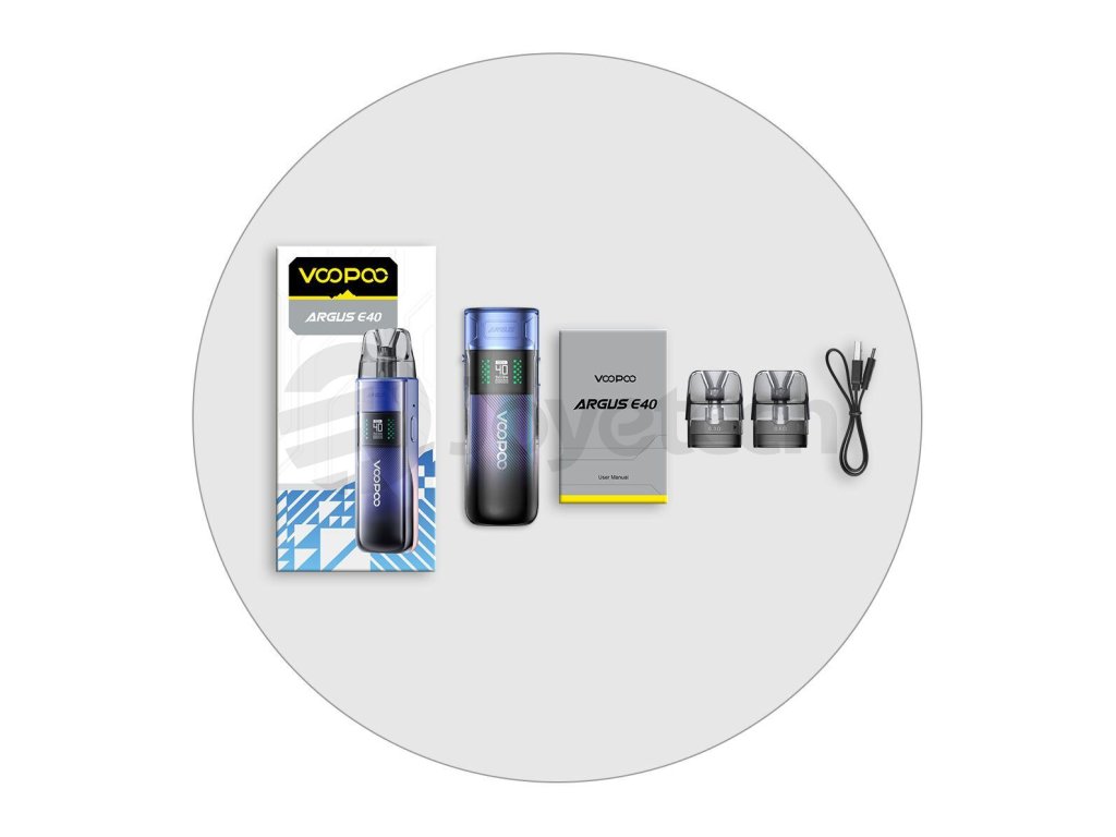 VooPoo Argus E40 Pod Kit je všestranný pod systém vhodný ke všem typům vapování. Poznejte nepoznané kvality futuristicky zpracovaného modelu s podporou dvou metod spínání potahu, stylovým displejem, možností regulace výstupního výkonu, manuálním nastavením přívodu vzduchu a podporou platformy PnP-X. Vapujte dlouhé hodiny bez nutného dobíjení díky integrované baterii s kapacitou 1800 mAh a užívejte si nerušený vaping s cartridgemi o objemu 4,5 ml. VooPoo Argus E40 Pod Kit má zaručeně co nabídnout.