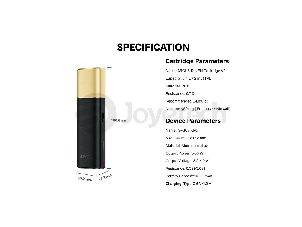 - 1x VOOPOO Argus Klyc tělo s baterií 1350mAh